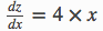 现在我们来看求出来的导数是不是正确的。注意到y = x * 2和z = x * y,所以z等价于2 * x * x。它的导数那么就是: