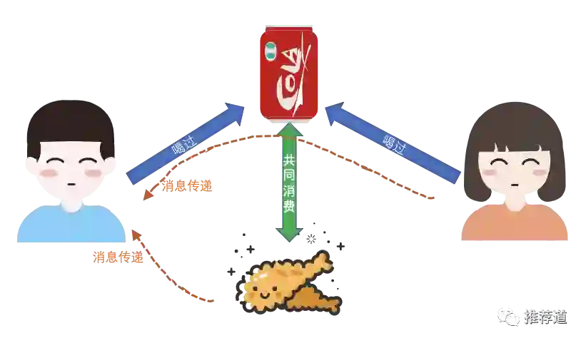 这些ID不再是孤立的,而是彼此关联,从而带来了信息的传递 。之前,小明喝过“可口可乐”,只有“可口可乐”这一个概念为推荐算法刻画小明贡献信息。如今,因为小红也喝过“可口可乐”,小红的信息也能传递给小明;因为“可口可乐”与“炸鸡”经常一起消费,所以“炸鸡”的信息也能够传递到小明身上。所以,