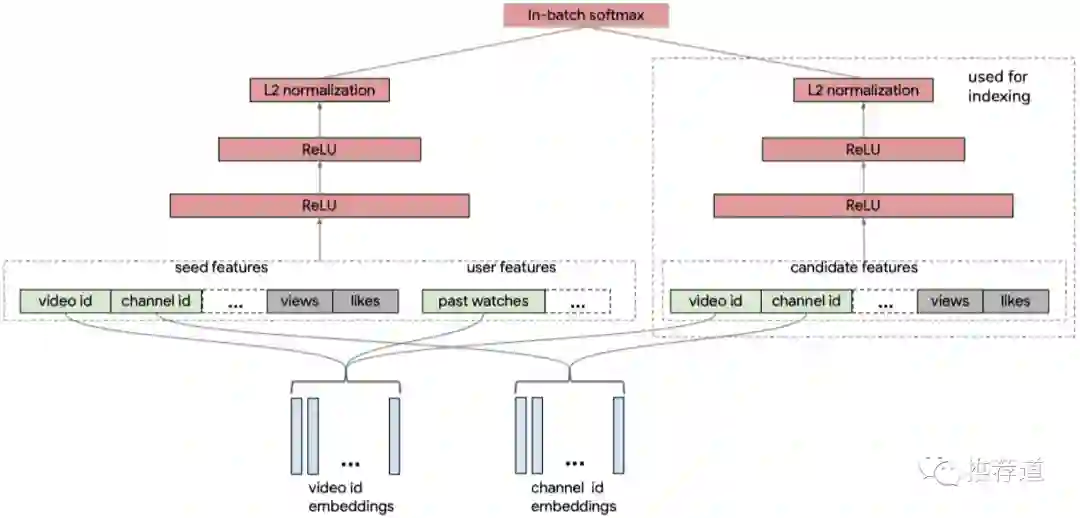 喂入塔的user/item特征,不仅包含了其自身的信息,同时也融合了与其类似的user/item的信息,类似User CF或Item CF 。喂入双塔的信息大大丰富,有助于模型学到更复杂的模式,同时也缓解了对