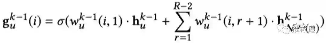 r种关系的邻居向量”时的权重(r=1,代表融合自身时的权重)。至于"i",因为我们要