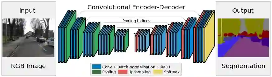 SegNet 的新颖之处在于解码器对其较低分辨率的输入特征图进行上采样的方式。具体地说,解码器使用了在相应编码器的最大池化步骤中计算的池化索引来执行非线性上采样。这种方法消除了学习上采样的需要。经上采样后的特征图是稀疏的,因此随后使用可训练的卷积核进行卷积操作,生成密集的特征图。我们提出的架构与广泛采用的 FCN 以及众所周知的 DeepLab-LargeFOV,DeconvNet 架构进行比较。比较的结果揭示了在实现良好的分割性能时所涉及的内存与精度之间的权衡。