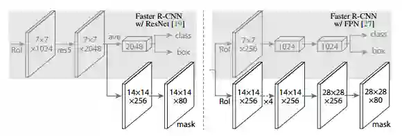 Mask R-CNN 与 Feature Pyramid Networks(类似 于PSPNet,它对特征使用了金字塔池化)相结合,在 MS COCO 数据集上取得了最优结果。