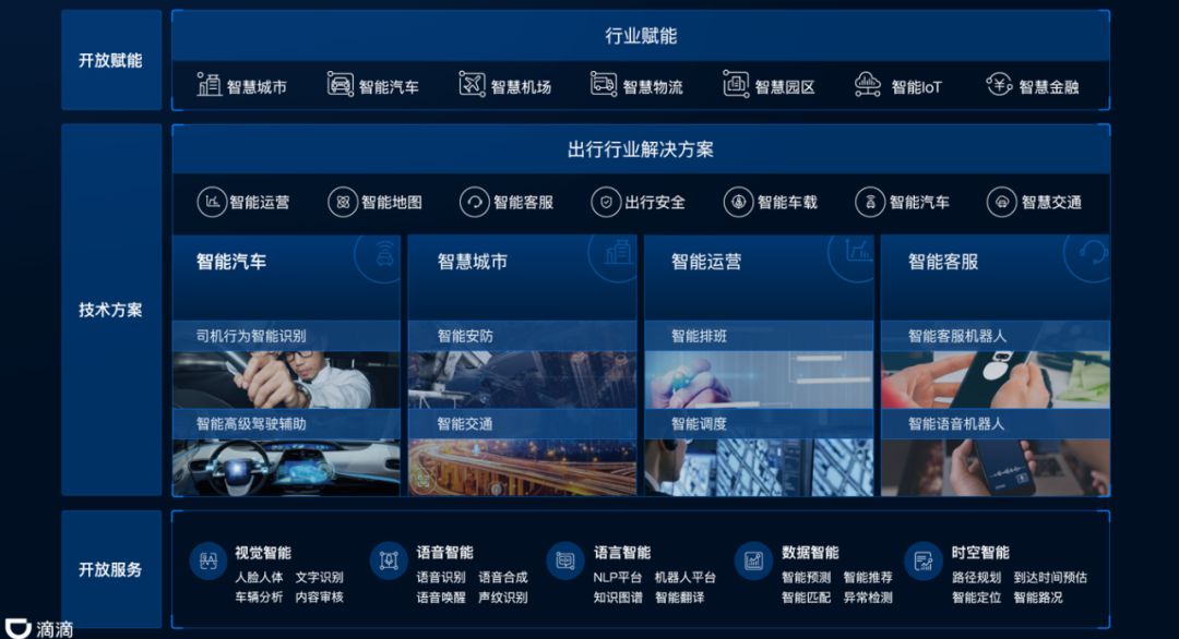 滴滴出行所拥有的庞大数据量也是其AI能力的基石,形成了智慧交通、智能交通工具、智能营运、出行安全、地图、智能客服、AI赋能社会等庞大的AI生态。另外,叶杰平还正式发布了滴滴人工智能技术与解决方案开放平台。