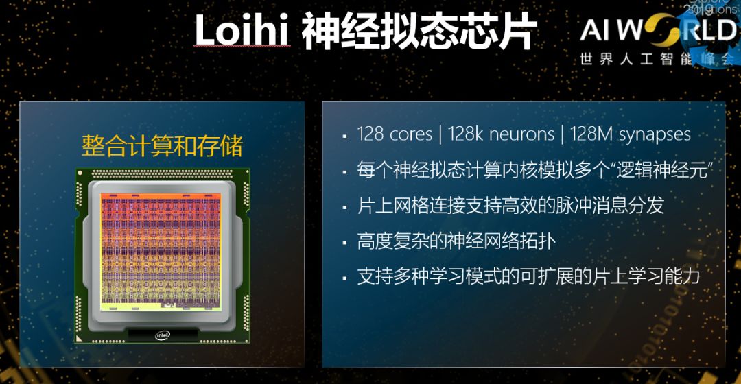 在智能芯片研发上,英特尔优势尽显,Loihi神经拟态芯片实现了计算和存储功能的整合:
