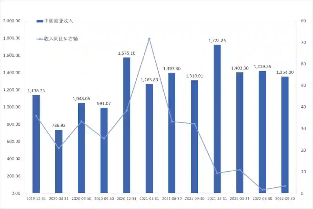 收入结构方面,中国商业分部作为与宏观经济强相关的业务版块,在服饰等可选消费品增速承压的背景下,表现出一定的韧性,FY23Q2的营收为1354.31亿元,同比下滑1%。