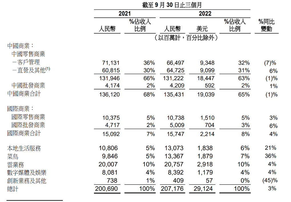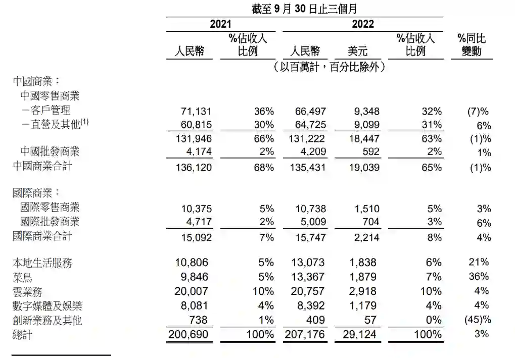 本季度,阿里实现营业收入2071.76亿元,同比增长3%。