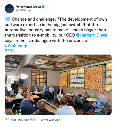 但大众并不是没有意识自己“需要一种软件文化”,今年 5 月,迪斯在 Twitter 上表示,“发展 [我们] 自己的软件技能是汽车行业必须做出的最大转变——比向电动汽车的过渡要大得多。”