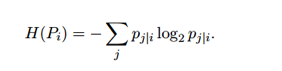 为了测量条件概率SNE差值的总和的最小化,在全体数据点中使用梯度下降法使所有数据点的Kullback-Leibler散度总和减小到最小。 我们必须知道,K-L散度本质上是不对称的。