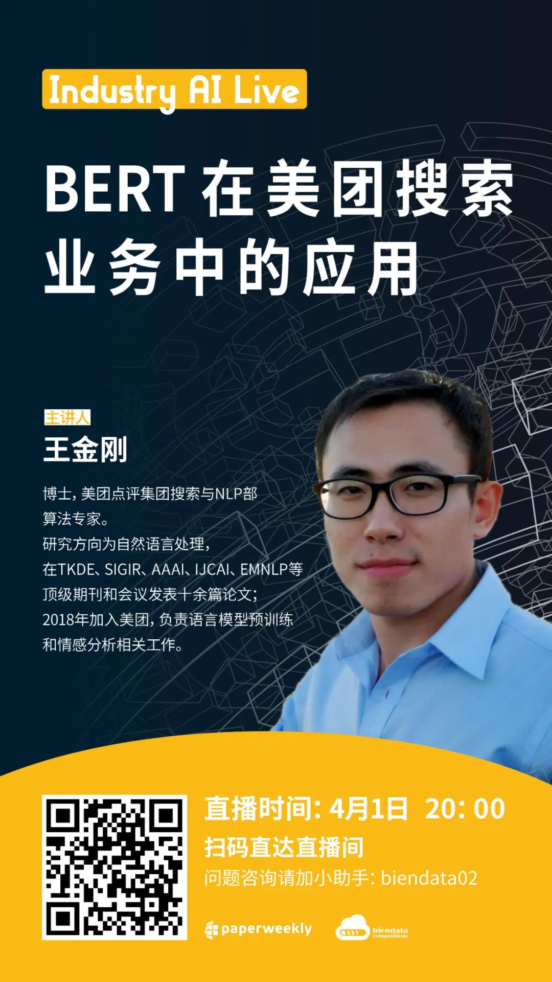 本期 Industry AI Live,我们邀请到来自美团点评集团搜索与 NLP 部算法专家-王金刚,为大家带来 BERT 在美团搜索业务中的应用的主题分享。