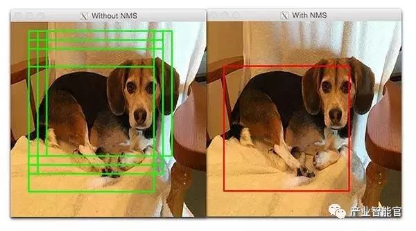图 3:应用 NMS 会抑制重叠的和置信度不高的边界框。这个方法在一些特定的用例中是有效的,但是它通常比较慢和繁琐,也容易出错。