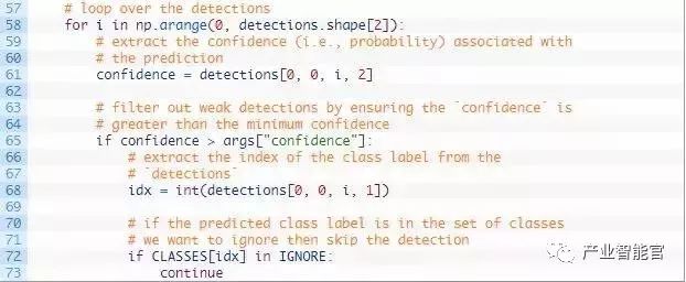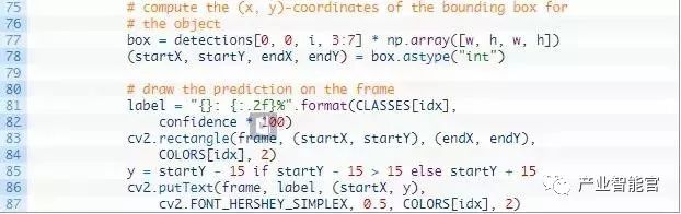 然后,回到 Ezekiel 的第一个问题,我们可以忽略 INGNORE 集合中的类别(#72—73)。如果这个类别是要被忽略的,我们只需返回到顶部的检测循环(不会显示这个类别的标签或边界框)。这符合我们的「quick hack」解决方案。