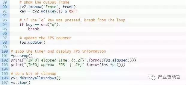 在后面几行中,当循环中断后,我们会显示时间+fps(帧每秒)指标然后清空。