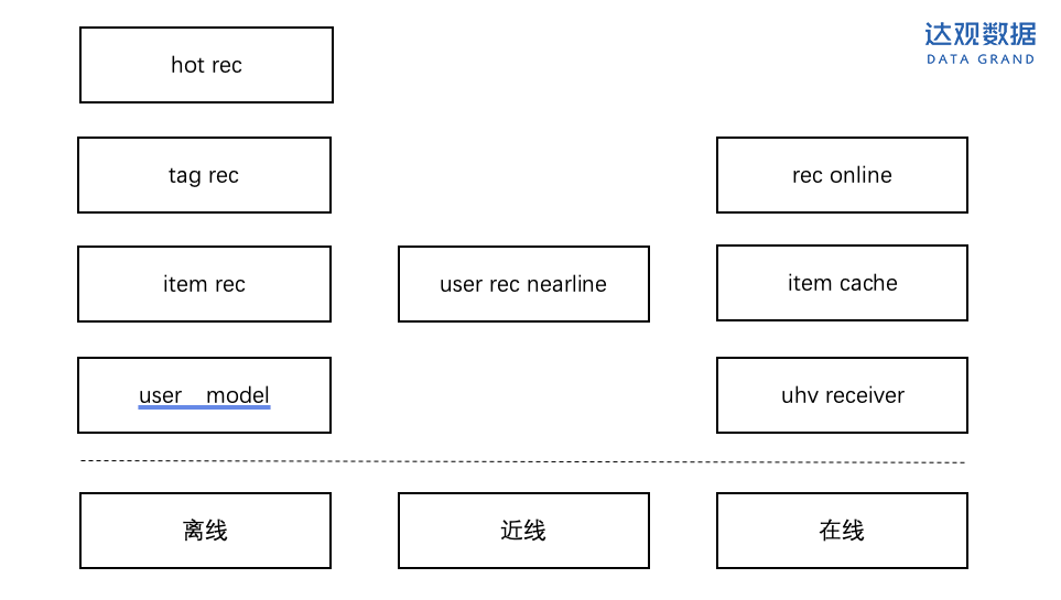 达观推荐引擎采用在线-近线-离线三层系统架构,可以从性能和算法复杂度两个维度来进行区分。