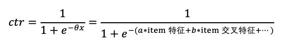 交叉特征对于ranking特别重要,核心在于逻辑回归函数中,如果与预测item无关的特征不会对item的排序产生影响,只有item特征或者与item交叉的特征才会对排序有实质影响,因为其他特征对任何待预测item的打分贡献是一样的。
