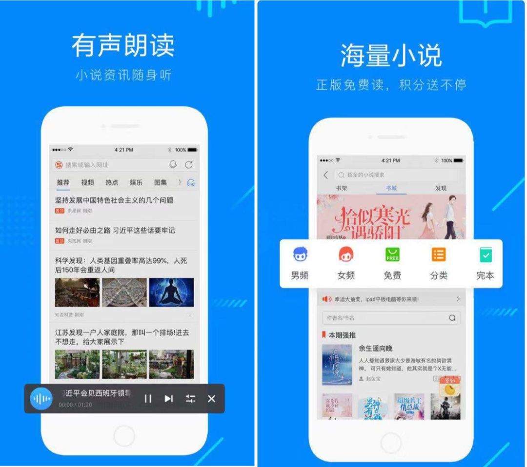 上线了“有声陪伴”功能,可以选择女声、男声,也是为浏览器与用户的交互增加了新方式;我试了下,有声结合搜狐主打的奇闻爆点内容,体验还是很不错的。