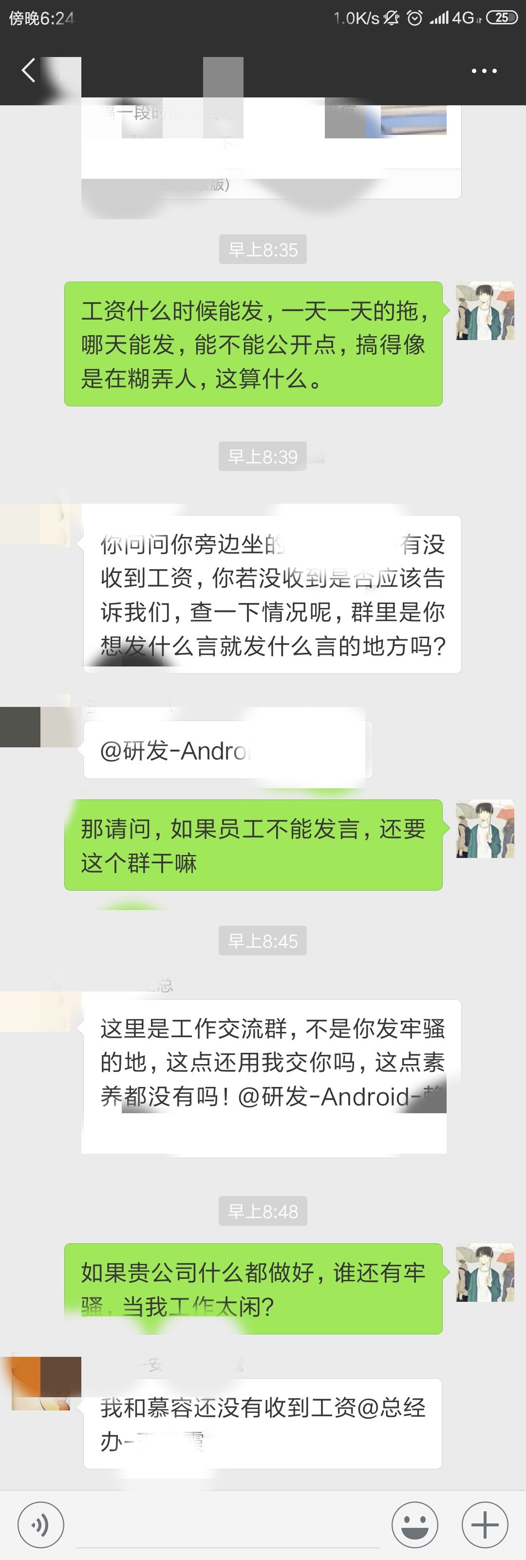 @horseLai :辣鸡公司拖工资还不让人说,每个月都拖,私下发短信不鸟我,群里吐槽一下还说我没素质,这就像一个欠你钱的人,拖拖拉拉,你找他还钱他特么还说你没素质,这特么还有天理么?