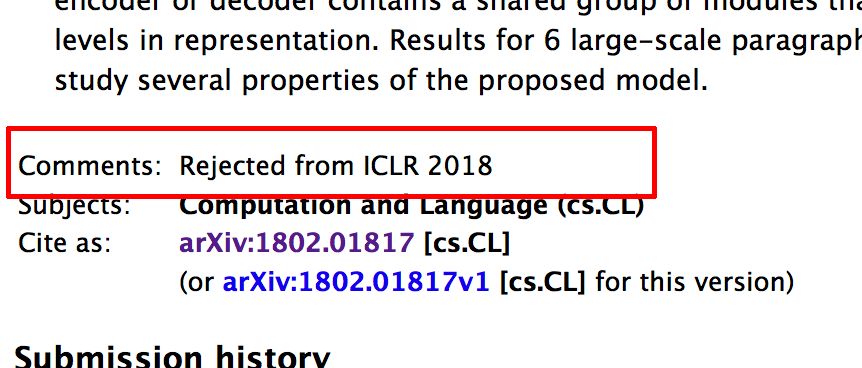 还没来得及细看标题,我们就被Comments里大喇喇写着的一句话,吸引了眼球:“Rejected from ICLR 2018”……