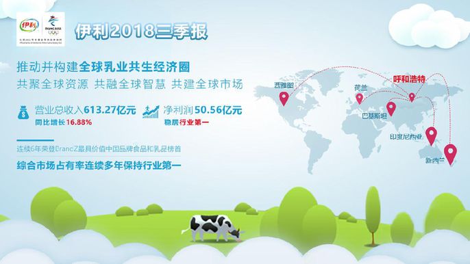 新华网北京10月31日电(沈美)10月30日,伊利股份(600887.SH)披露2018年三季度业绩报告,报告显示,2018年前三季度伊利实现营业总收入613.27亿元,同比增长16.88%,净利润50.56亿元,业绩持续领跑行业。业内专家分析,在乳业激烈的市场竞争中,伊利的业绩增速得益于其积极打造的“全球乳业共生经济圈”带来的发展动力。