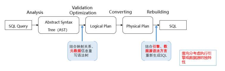 2.SQL 转换:SQL 转换发生在两个阶段,一阶段是通过解析器得到抽象语法树后,进行语法树重写以确保该语法树能转换为 SuperSQL 统一逻辑计划;另一阶段是基于 SuperSQL 统一逻辑计划与不同引擎或者数据源语法之间的等价映射关系,能够将 SuperSQL 逻辑计划转换为不同的引擎或数据源语法,做到执行引擎的无感切换,也为下文的智能引擎选择功能奠定基石。