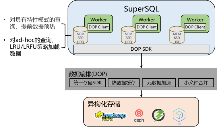 数据编排自适应:实现不同异构存储场景下的存储加载策略,自适应不同架构下的数据融合计算需求,通过自动数据冷热分层,多级缓存,提升存储访问性能