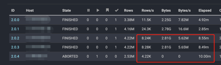 在开启自适应调度后,Task 会避免调度到 CPU 算力差的节点,有效地消除长尾问题。如下图所示,Task 的执行时间更加均衡,避免长尾问题影响整个计算任务的性能。