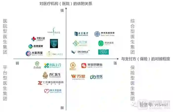 而位于第三象限的平台型医生集团,往往不自有医生或医疗机构,更多作为第三方服务于医生集团,通过互联网平台帮助对接医生、医院与患者,形成平台型业务,例如:名医主刀、杏仁医生、好大夫等。