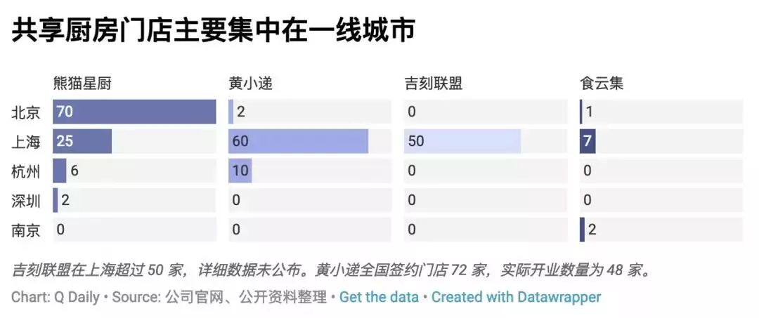 共享厨房的数量很难估计。因为几家做共享厨房的公司都在拿地和扩张中。