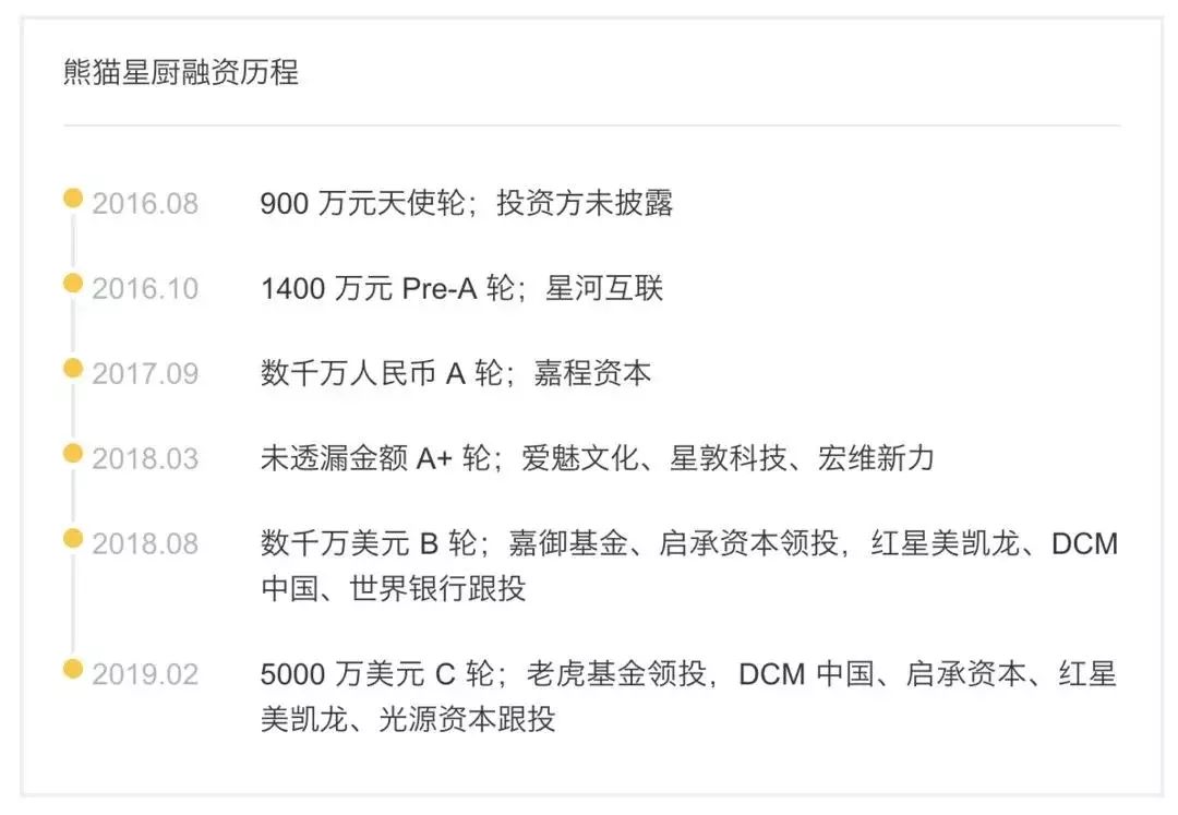 这是个刺激。做共享厨房生意的公司近期都宣布了新融资。吉刻联盟的对手——熊猫星厨也在2月22日宣布融资5000万美元。2月18日,黄小递获得了Pre-A轮融资,望湘园是它的股东之一。