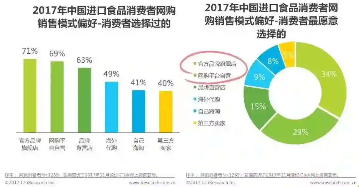 七成左右的消费者会选择官方品牌旗舰店和平台自营购买进口食品,食品安全及品质保障是驱动因素。