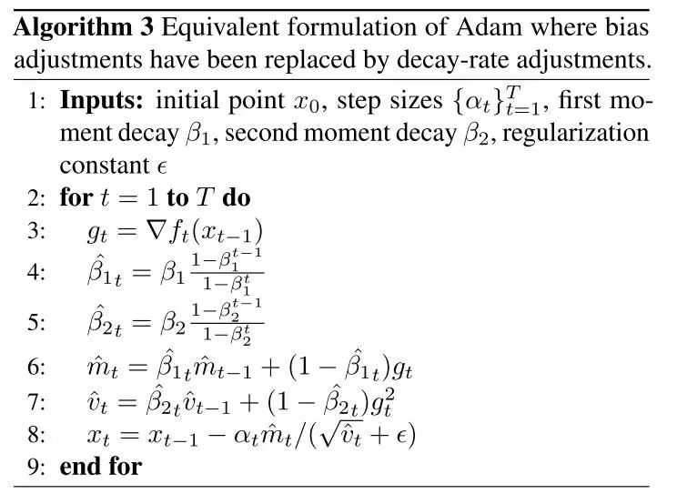 本文的作者受“On the convergence of adam and beyond. International Confer- ence on Learning Representations”一文启发,使用逐渐增加衰减的方法修改 beta1 和 beta2,具体算法如下: