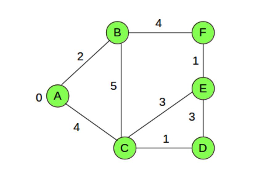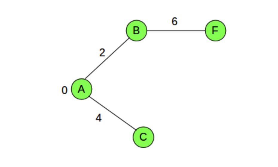 这里的源顶点是A.数字表示顶点之间的距离。最初,sptSet为空,因此我们将为所有顶点指定距离。距离是: