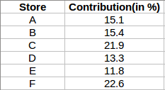 对应每个商店是他们对整体销售的贡献(%)。在图中,我们将商店A的贡献率为15.1%,商店B的贡献率为15.4%,依此类推。最后,我们使用饼图将其可视化。但那么这张图表和图之间有什么区别?