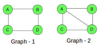 对于Graph-1,每个顶点的度数为2,因此图-1是常规图。图-2不是规则图,因为每个顶点的度数不相同(A和D度是3,而B和D度是2)。