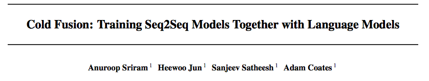 在该研究中,我们展示了一种新型 Seq2Seq 通用模型架构,其解码器和预训练的语言模型一起训练。我们研究并确认,架构变化对该模型充分利用语言模型中的信息至关重要,这也帮助模型实现更好地泛化;通过利用 RNN 语言模型,冷聚变模型产生的词错率比深度聚变模型低 18%。此外,我们证明冷聚变模型能够更轻松地迁移至新的域,仅需要 10% 的标注数据,即几乎可完全迁移至新的域。