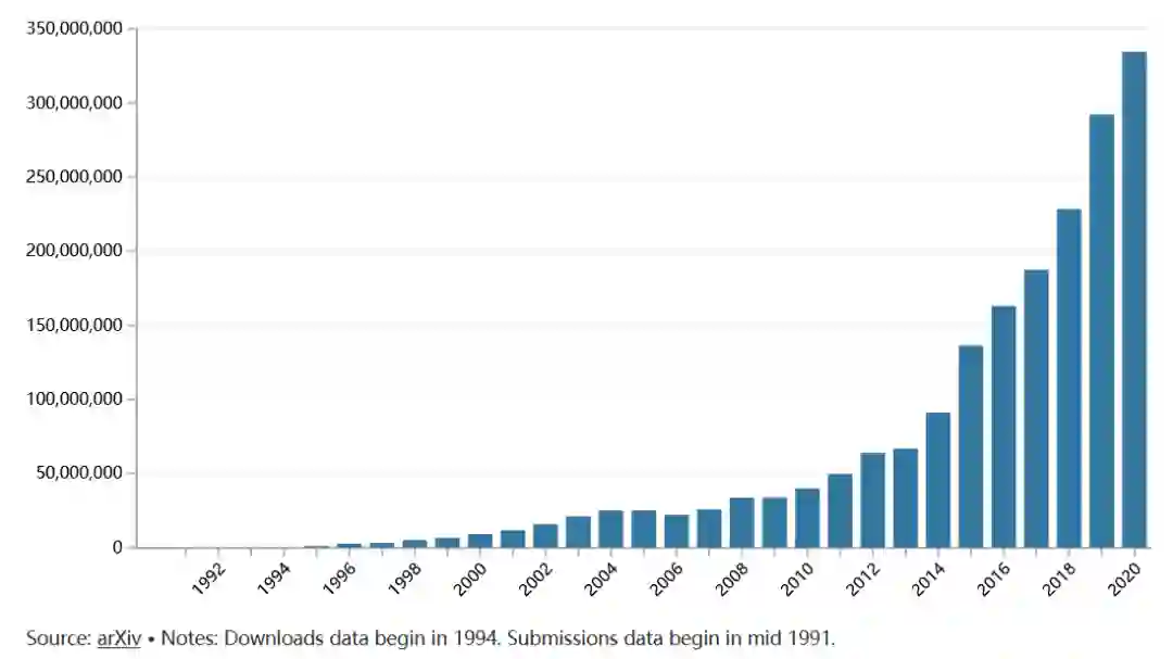 ArXiv经历了爆炸式发展,创始人保罗·金斯帕格得知这个消息后说:「网站用了23年半获得100万份论文,又用了7年获得200万份论文,或许之后只需要4年半就能获得300万份。」