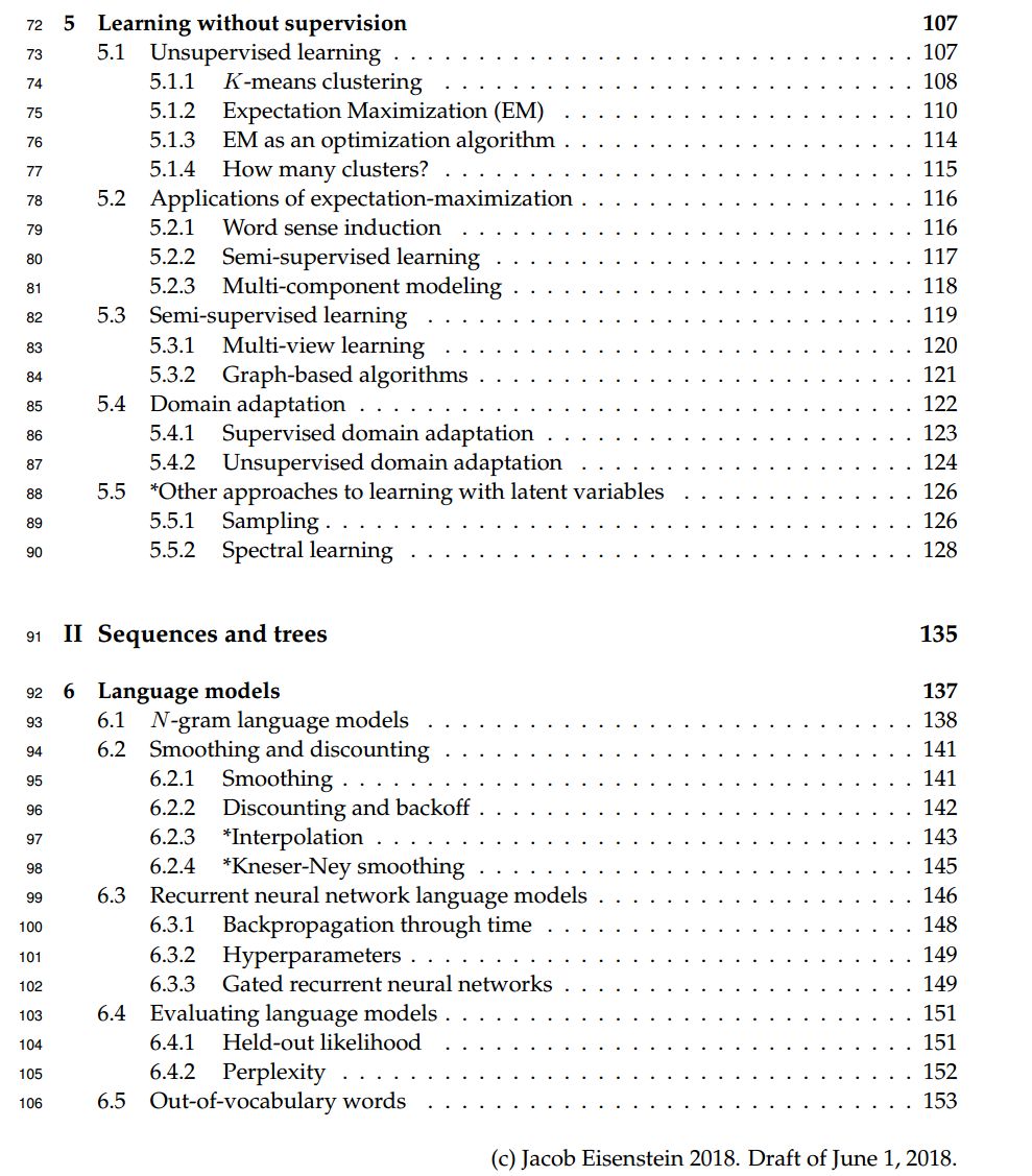 推荐一本2018年初发布的,由佐治亚理工学院交互计算学院副教授Jacob Eisenstein编写的深度学习与自然语言处理的教材。这本书由浅入深,在详细、全面介绍了自然语言处理相关的基础知识之上,结合了最新的深度学习技术,详细介绍了深度学习技术在自然语言处理很多方面的应用。文末附本书pdf下载地址。