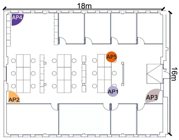 L型房间区域中的多访问点测量设置。(图片来源:IMDEA网络研究所)