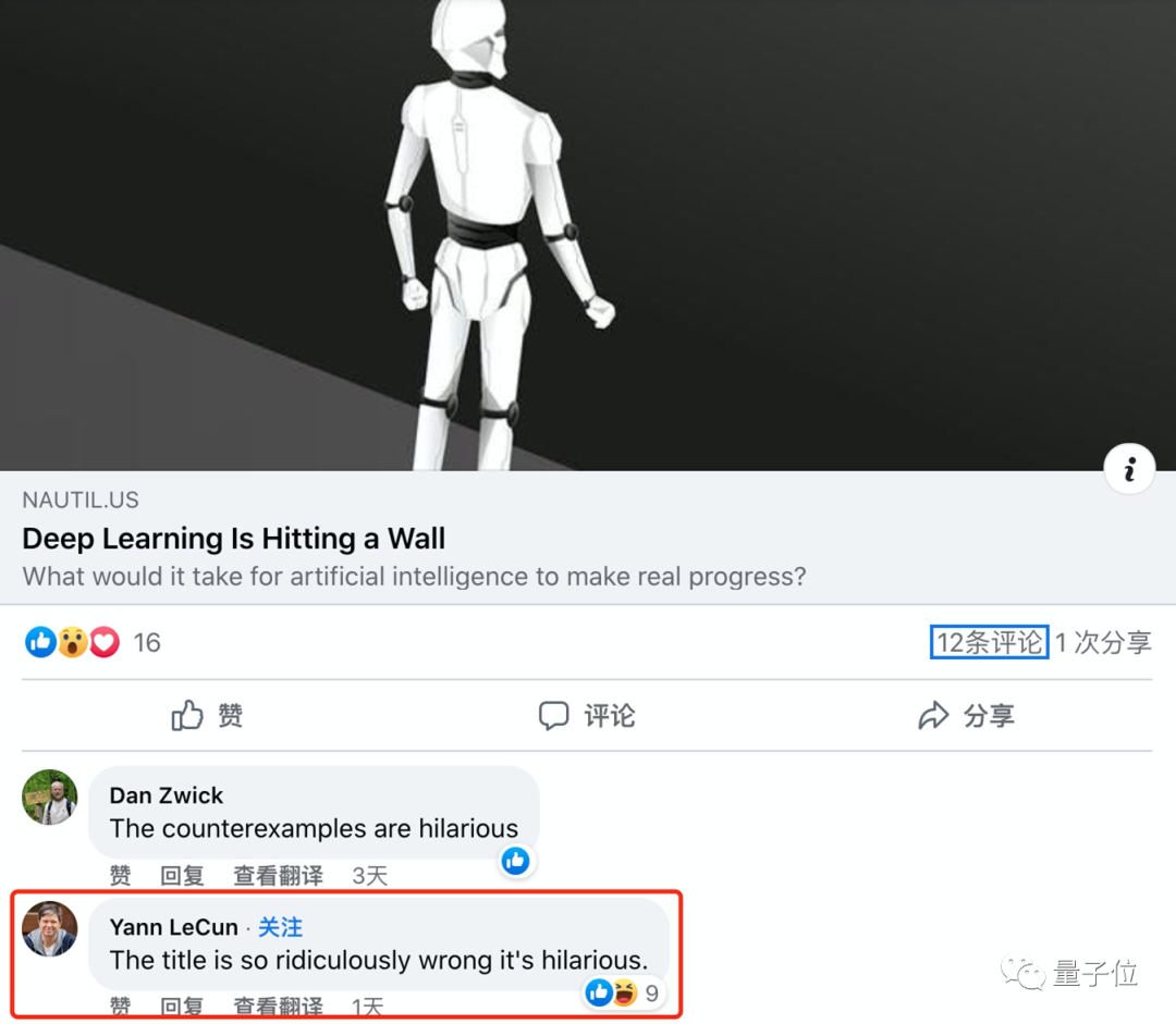 并且就在几个小时前,他还挂出Lecun在2018年发表的观点。