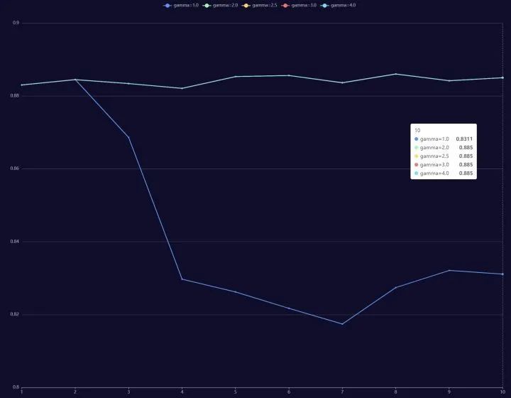 | 14-1 | +log(sigma), gamma=2.5 | 0.8802 | 82.3784 | 20.9238 | 0.8841 |