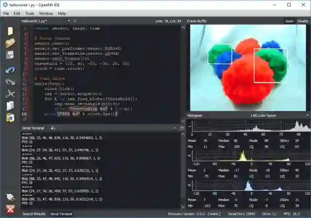 当然除了基本的硬件部分,更需要软件来实现人们的想法。OpenMV IDE是专门为OpenMV系列硬件开发的集成开发环境。