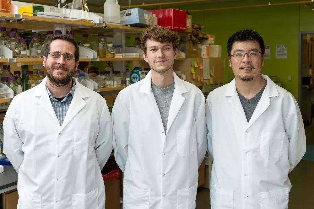 Jason S. McLellan(左);论文共同第一作者、德克萨斯大学奥斯汀分校博士生 Daniel Wrapp(中)和研究助理王年爽(右)