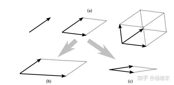 。这是因为矩阵可以看着是一组向量的集合,而矩阵的行列式的物理意义为矩阵中的各个向量张成的平行多面体体积的平方。这些向量彼此之间越不相似,向量间的夹角就会越大,张成的平行多面体的体积也就越大,矩阵的行列式也就越大,对应的商品集合的多样性也就越高。当这些向量彼此正交的时候,多样性达到最高。可以通过一个二维平面上的例子直观地理解一下这背后的逻辑。