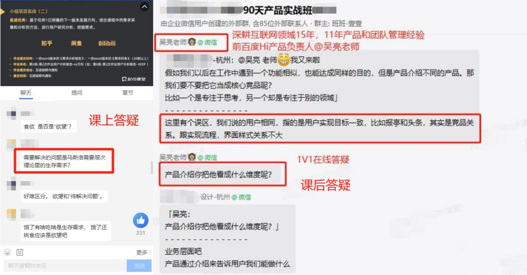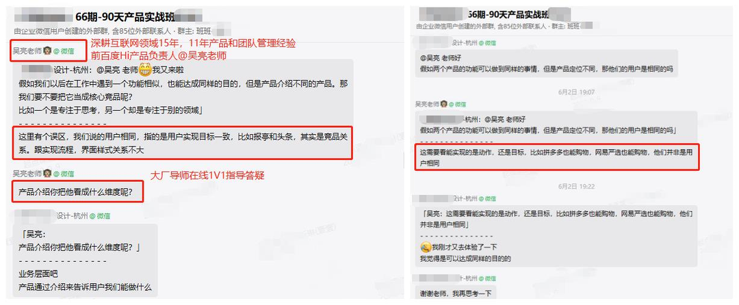 在学完产品的基础知识之后,我继续在班级群请教授课的老师们,老师们的方法论、过往经验都给了我很大的启发!