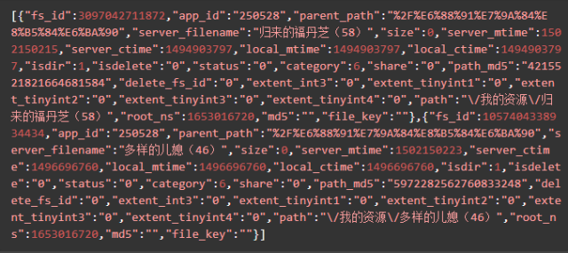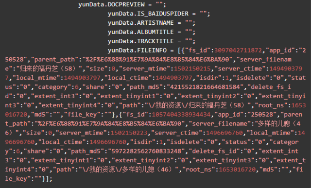 yunData.FILEINFO 结构如下,你可以将它复制粘贴到json.cn里,可以看得更清晰。