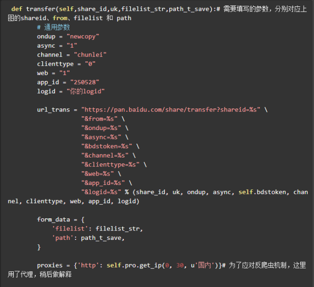 爬取到了这三个参数,就可以调用之前的 transfer 方法进行转存了。