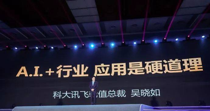图丨科大讯飞轮值总裁吴晓如发表题为《AI+行业,应用才是硬道理》的主题演讲,介绍科大讯飞 AI 技术在教育、医疗、客服等行业的应用情况