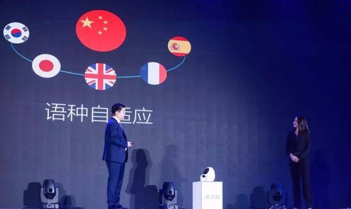 紧接着登场的科大讯飞执行总裁胡郁现场演示了世界上第一款能够对小孩进行英语教学的学习机——译呗翻译器。另外还有翻译领域全新的技术体验——AIUI 的全双工翻译系统。在和外国友人的互动中,搭载全双工翻译系统的阿尔法蛋充当了“翻译”的角色。不用戴任何的设备,只需要通过借助外部的设备,就可以帮我们来实现自由的翻译。