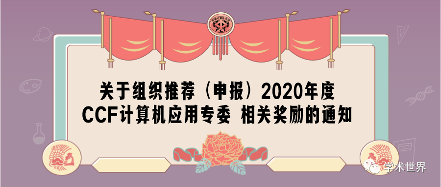 关于组织推荐(申报)2020年度CCF计算机应用专委 相关奖励的通知