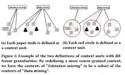 最后,利用HIN作为输入,通过Figure 4中文本粒度解决Figure 2a的DIH问题更容易,这是因为,在HIN中,可以使用explicit network结构(如按照特定节点类型分组或更复杂的结构)来定义语义文本单元。另外,也可以使用网络聚类的方法,通过改变簇的数量,在多个粒度范围内得出文本单元。